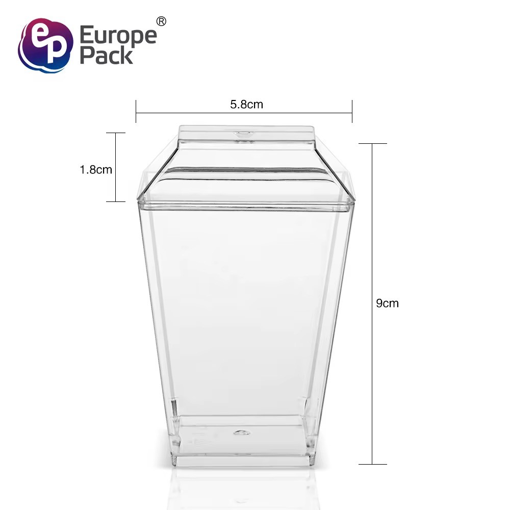 Fabricate din material plastic alimentar, rezistent și cristal clar, aceste pahare pun în valoare culorile și straturile desertului fără să se deformeze. Capacele se fixează ușor și permit stivuirea, iar lingurițele incluse oferă o prezentare completă și profesională.